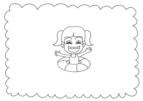 主体人物是一个戴着游泳圈的小女孩,在开心地学游戏。