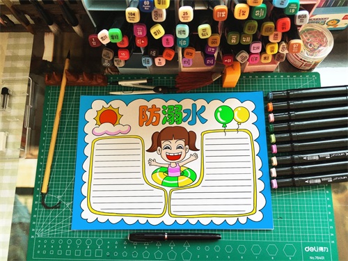 今天,就和美术老师一起来画一张简单又漂亮的“防溺水”手抄报吧。
