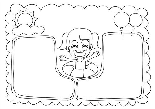 手抄报素材:救生圈、小孩子、太阳和气球。