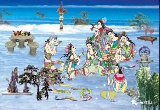 有一天,天上的七仙女前来大乳山拜见三圣母和义妹灵芝,她们被东面那片在阳光下熠熠发光的沙滩吸引住了。