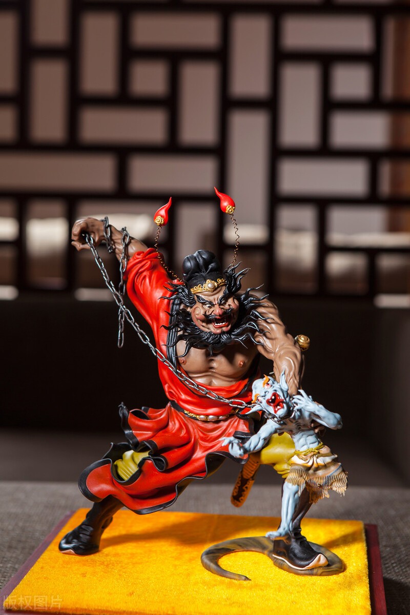 钟馗,可以说是中国神话中最忙碌的神仙了。在春节的年画上,他是门神;端午的时候,他又成了斩五毒的天师。再到后来,钟馗已经成为了一手拿元宝,一手持宝剑的形象。民间也逐渐形成一个规定:“镇宅赐福,拜钟馗;驱邪祛恶,拜钟馗;中榜夺魁,拜钟馗;护福积财、添禄增寿都拜钟馗!”钟馗,更是在2009年,跟随端午节一起被定为了“世界非物质文化遗产”。