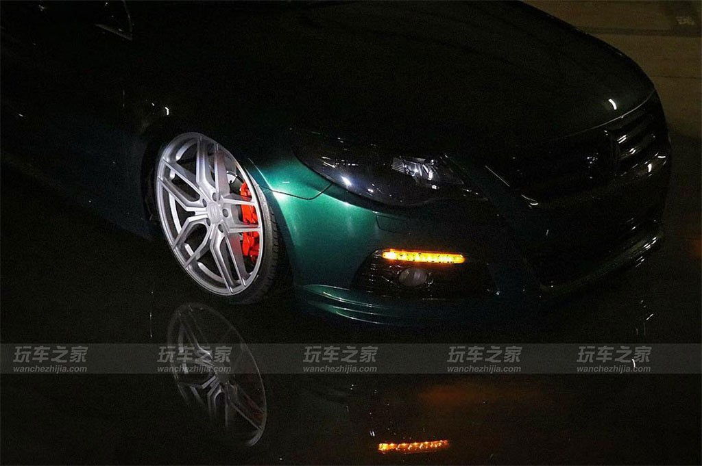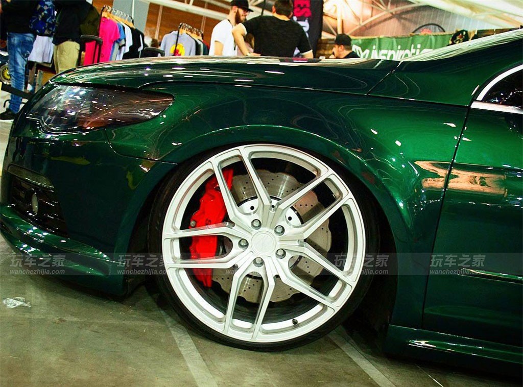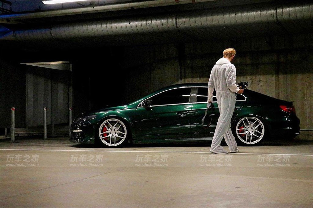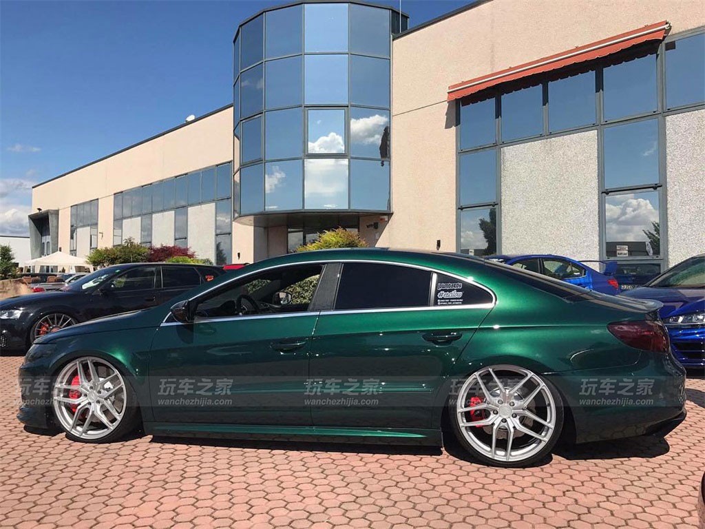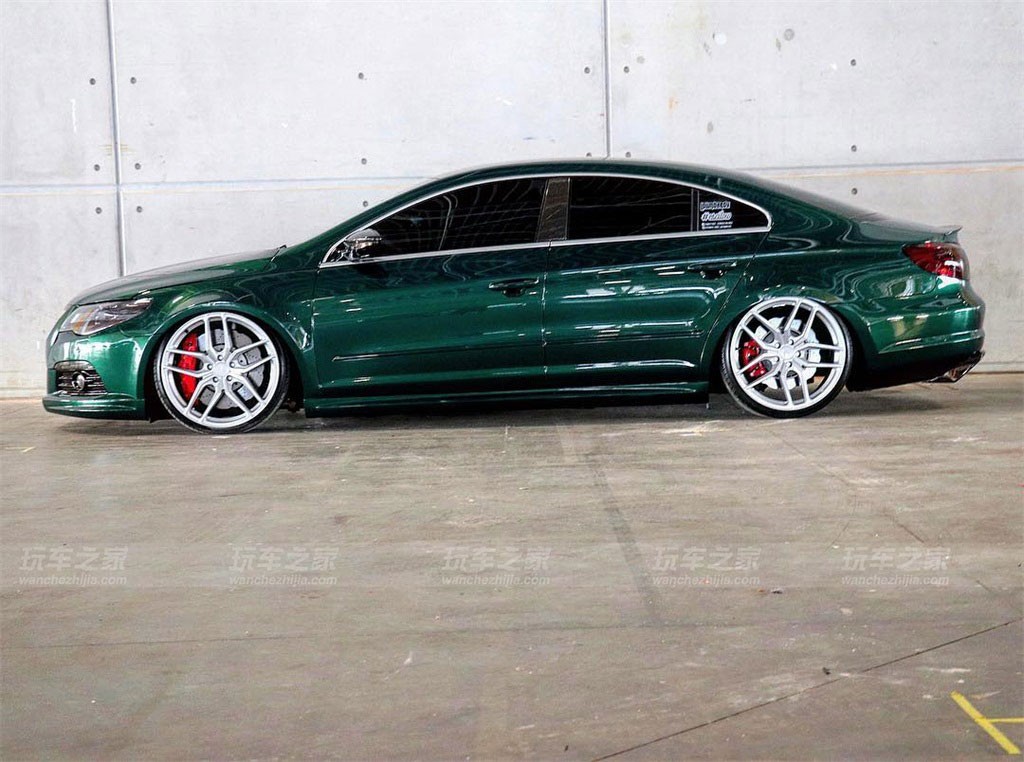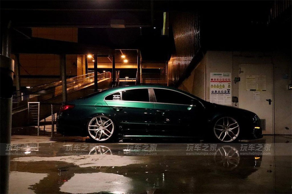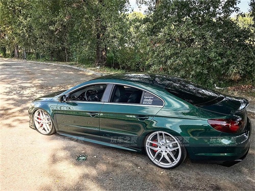 大众CC在外观上有着天然的优势,所以玩姿态在CC改装中算是比较普遍了,而这辆CC比较特别的就是车身颜色了,捷豹的英伦绿喷漆改色还是很吸引人的。