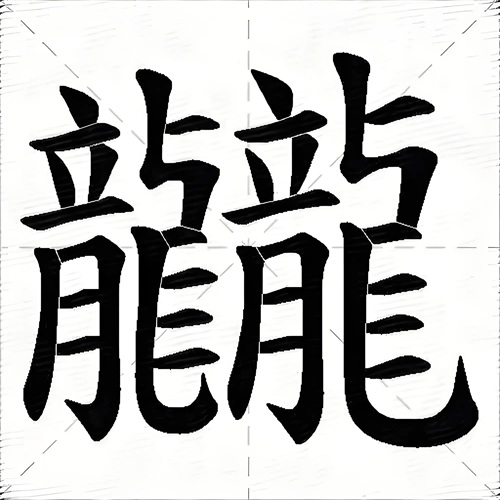 - 此字多见于古代碑刻或符咒,如清代《康熙字典》收录时,强调其象征吉祥与威严。民间传说中,双龙图案常用于镇邪,道教符箓亦借用「龖」字强化法力。