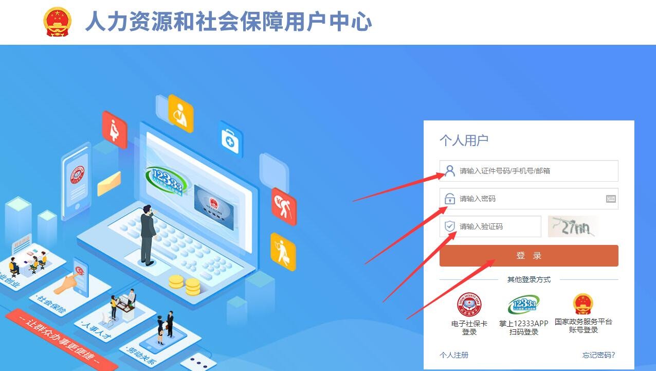 一、登录“全国人力资源和社会保障政务服务平台”,网址为:https://12333.gov.cn。