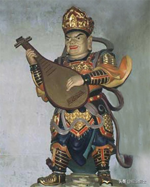 东方持国天王,梵名为Dhrtarastra,其职责是保护国家领土。持玉琵琶,护持东胜神洲。