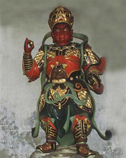 南方增长天王,梵名为Viradhaka,有助于人们增长善心。持青云剑,护持南赡部洲。