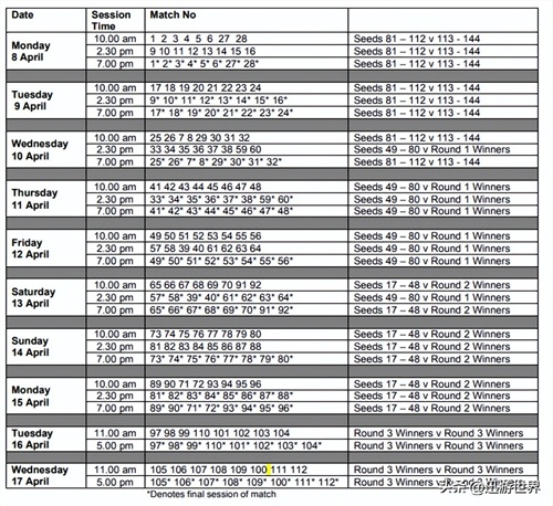 4月16日和17日的最后一轮是进入正赛的决赛轮次,届时将产生16位选手进入决赛。