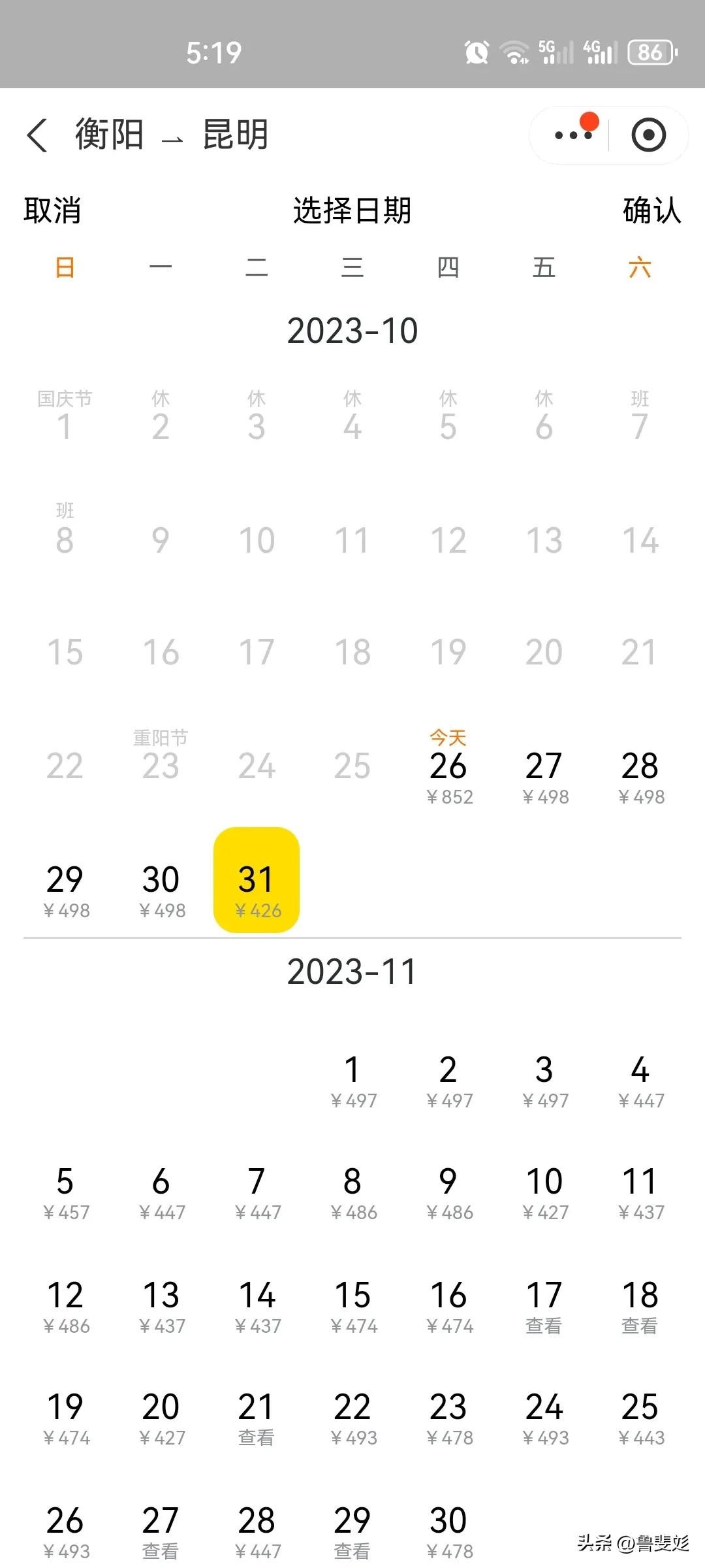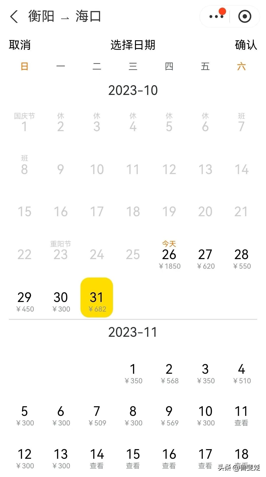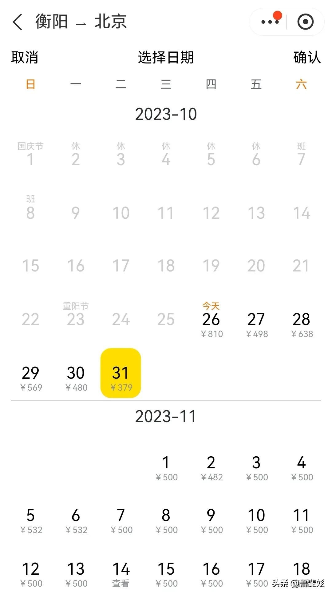 通过查询航班信息发现从衡阳出发到达北京,上海,海口,重庆,昆明,西安等城市,票价低廉相对于乘坐高铁成本还要优惠。
