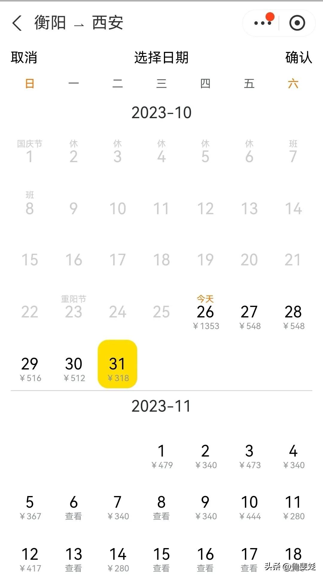衡阳到西安,最低票价280元,心动不如心动,飞到古都长安看看大唐不夜城的繁华。