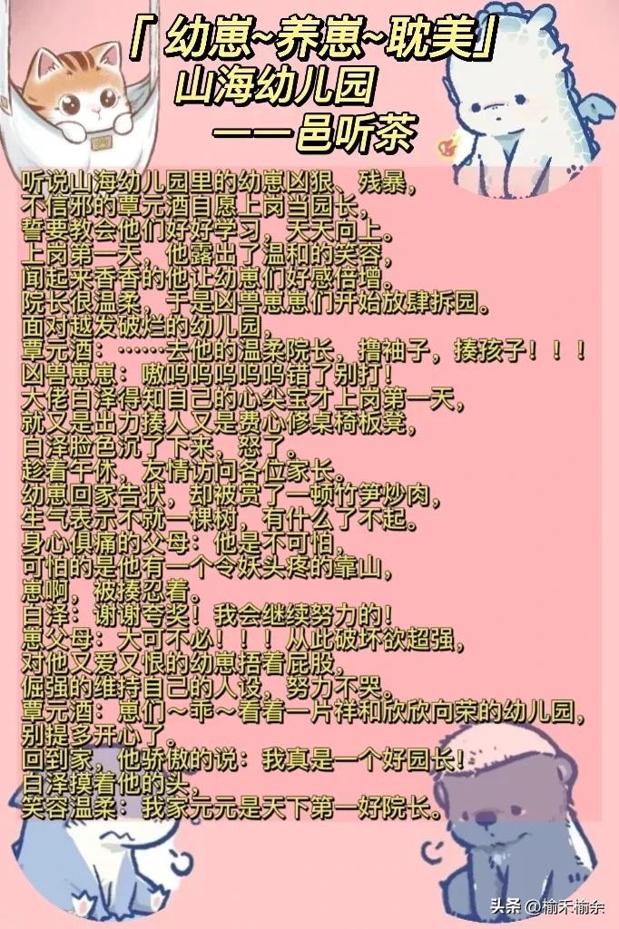 这本书我真的超级超级喜欢,虽然我没办法把那些幼崽的形象具化出来,但我脑子里大概给ta们勾勒了形象,这本书就只一本妥妥的治愈小甜文,但是它该有的要素都不缺,不是那种尬甜的文。这本小说里我最喜欢的就是看主角和幼崽们的相处了,那些幼崽哪怕是看文字都能感受到ta们的可爱,真的很想亲手rua到哎!真的很推荐大家去看!