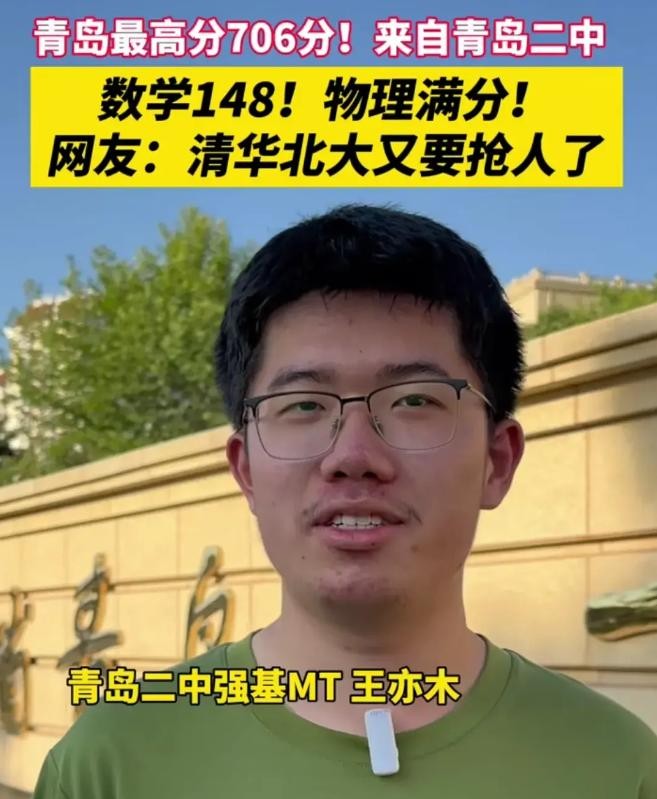 在青岛,数学148分,物理满分的王亦木同学更是让人刮目相看。他不仅展示了学术的精湛,更是彰显了青春的活力和才华。