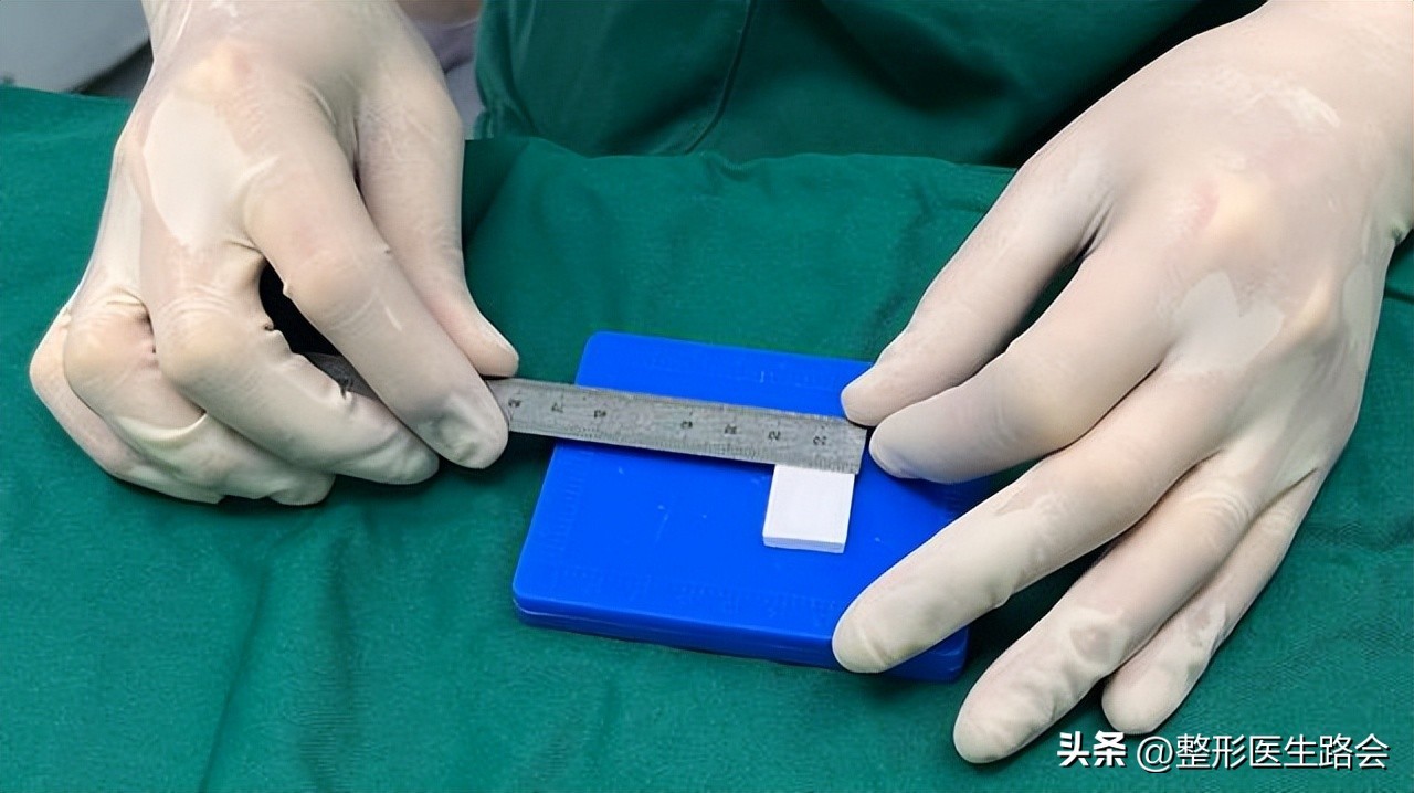 根据术前测量的数据,对膨体划线标记,然后进行雕刻。