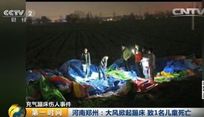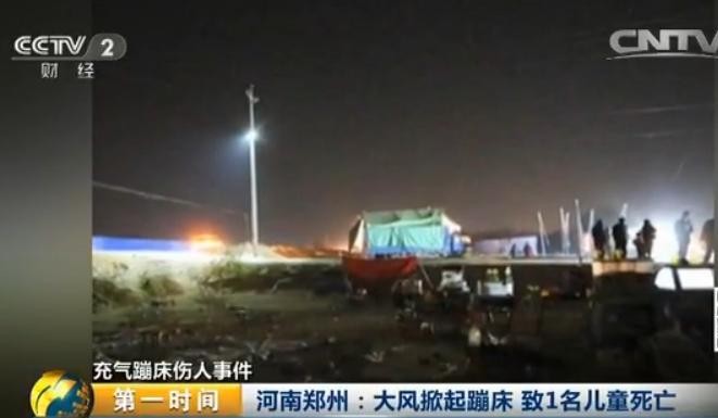 河南郑州大风掀起蹦床 致1名儿童死亡