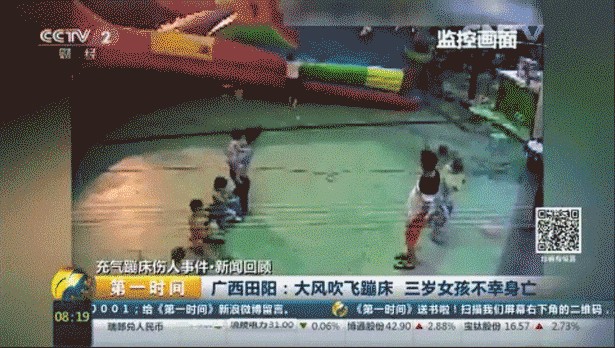 又是一起重演的悲剧,其实,近年来,充气蹦床伤人的事件屡屡发生,去年6月,广西田阳一个三岁的小女孩也是被同样的不幸夺去了生命。
