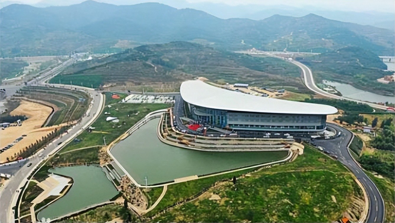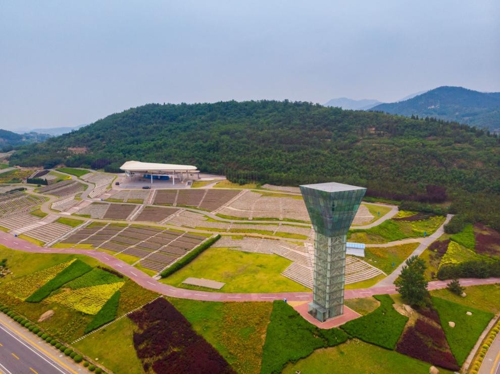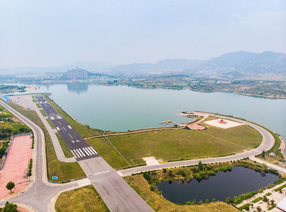 园区内的飞行区拥有长800米、宽60米的水陆并行飞机跑道,甚为壮观。观演区内的景观看台能容纳5万人,从远处看这5万个座位高低错落、凸凹有致,随山势起伏跌宕,形成了一幅美丽的画卷。