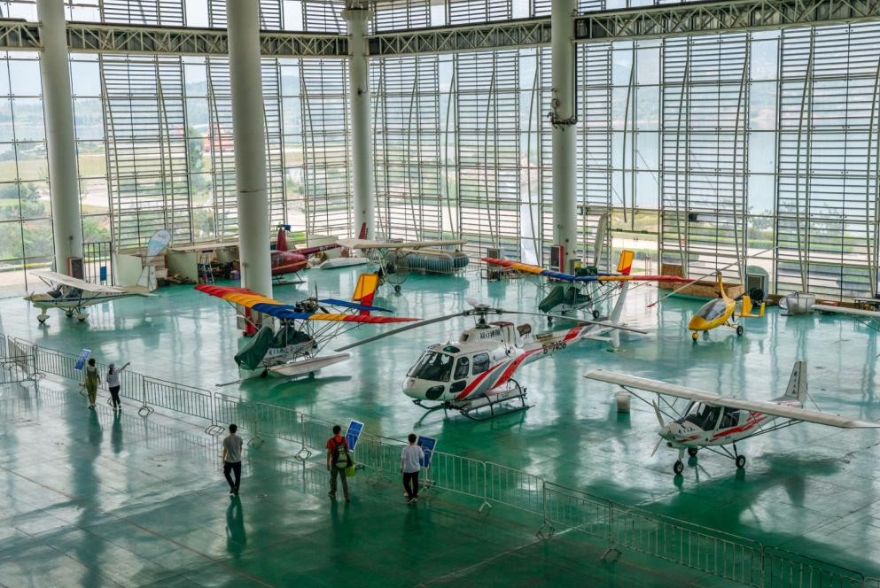 雪野航空展览馆是航空器交易中心和青少年科普教育基地,共分两层,一楼为展览区,目前展览有多家通航公司的多架飞机。