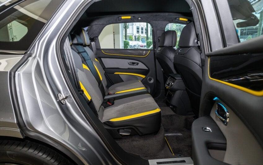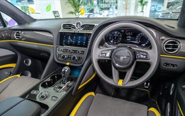 这款限量版的Bentayga Umbra搭载了一套22寸的轮毂,并且采用碳纤维材质的后尾翼、左右后视镜外壳以强调运动感,内饰则由较灰色皮革搭配黄色线条组成。