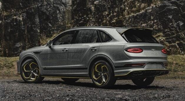 “Umbra”一词是指暗影中最为黑暗的一部份,完全无法透光,但这辆Bentayga Umbra并没有如其名称般的采用全黑外观和内饰,而是采用了灰银色的外观车身烤漆,搭配车身上一些黑色和黄色的线条点缀,原本的镀铬水箱护罩也换成了黑色的设计。