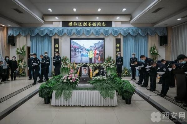 2022年9月5日早高峰,姜强接警后驾驶警用摩托车前往未央区朱宏路快速干道处置一起车辆故障阻碍交通的警情时,被从后方驶来的货车撞击致伤。经过52天的治疗抢救,10月26日,由于伤情恶化,姜强同志最终医治无效不幸牺牲。