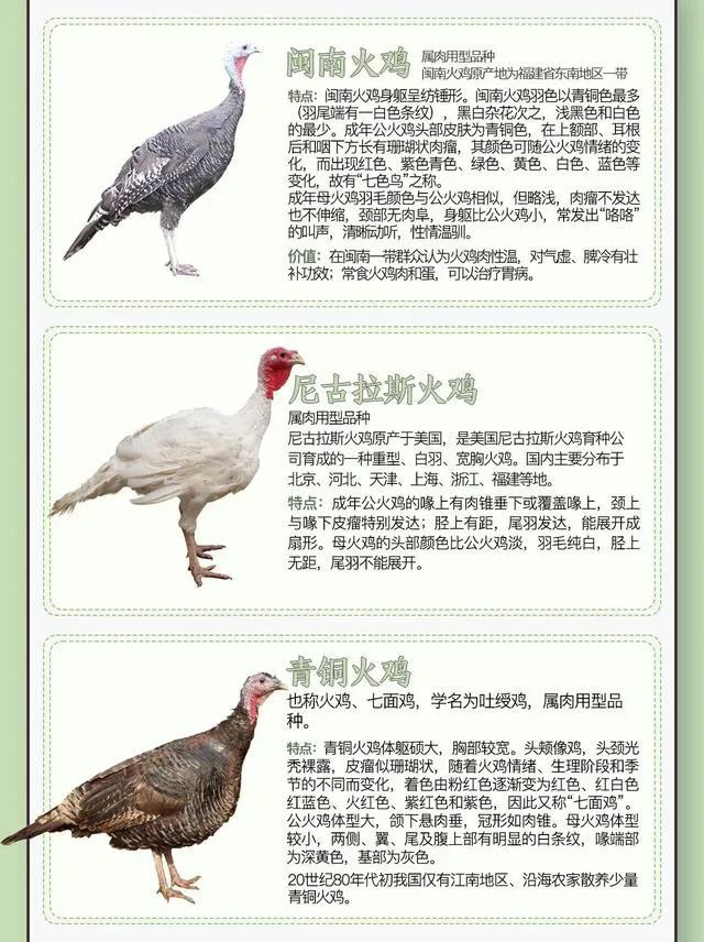 其次是火鸡。火鸡是一种重要的家禽品种,以其肉质鲜美、营养丰富而闻名。养殖火鸡是一项具有一定挑战性的工作,因为火鸡对环境和饲养管理要求较高。火鸡的养殖逐渐成为一种新兴的农业产业,在市场上有着广阔的发展前景。