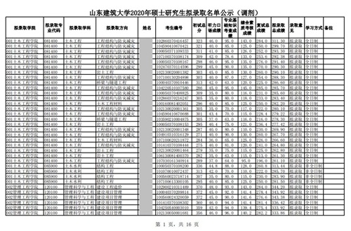 根据山东建筑大学2020年硕士研究生拟录取名单公示(调剂),小编整理出了一份山东建筑大学2020年硕士研究生各专业拟录取人员最低分,最低分数线统计中未包含退役大学生士兵,仅供大家参考。