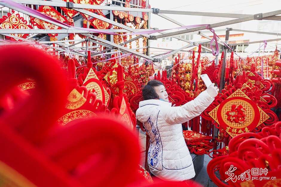 2018年2月12日,拥有百余年历史的李村大集,承载了太多李沧市民的记忆。每到过年时,采购年货的人们比肩接踵、热闹非凡。(辛若珂 摄/光明图片)