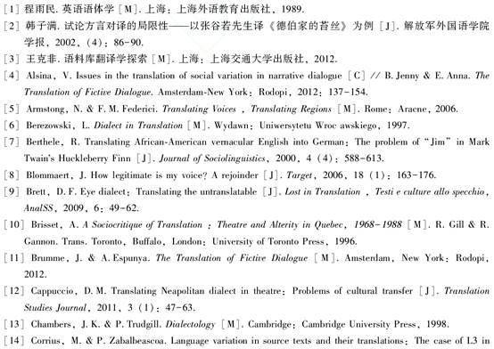 北京外国语大学科研项目“英汉戏剧中方言翻译的比较研究”(2014JX003);中央民族大学科研项目“方言与方言翻译研究:回顾与展望”(2014WGYXY07);中央民族大学团队建设项目“中国少数民族文化典籍英译研究”(2015MDTD02C)