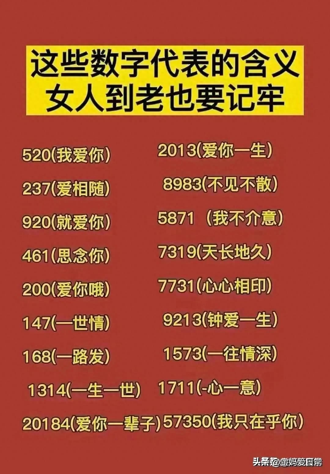 这些数字代表的含义女人记牢了