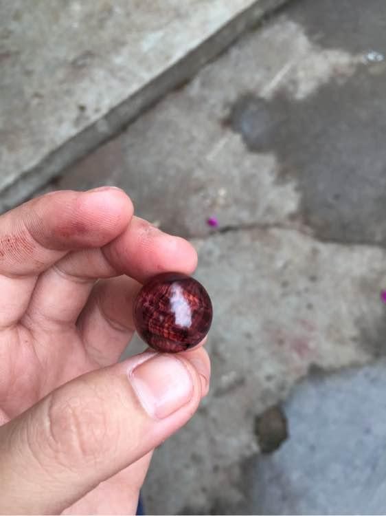 经过一番折腾,终于给他做成了珠子。因为当时手机没电了,制作过程没拍照片。不过想必大家已经熟知了这些套路,这次也请轻喷。看起来是不是有点像血滴子?有人说血滴子是一种割头的武器,而这个颜色,感觉它来叫血滴子更加适合……