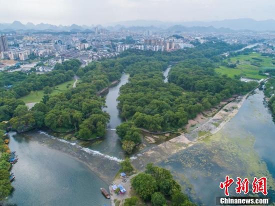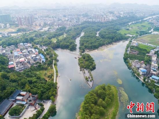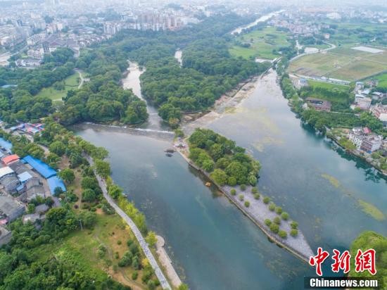 在加拿大萨斯卡通召开的国际灌排委员会第69届国际执行理事会,于当地时间8月13日晚公布了2018年(第五批)世界灌溉工程遗产名录,中国的都江堰、灵渠、姜席堰和长渠4个项目申报成功。图为航拍灵渠,风景如画。 王以照 摄