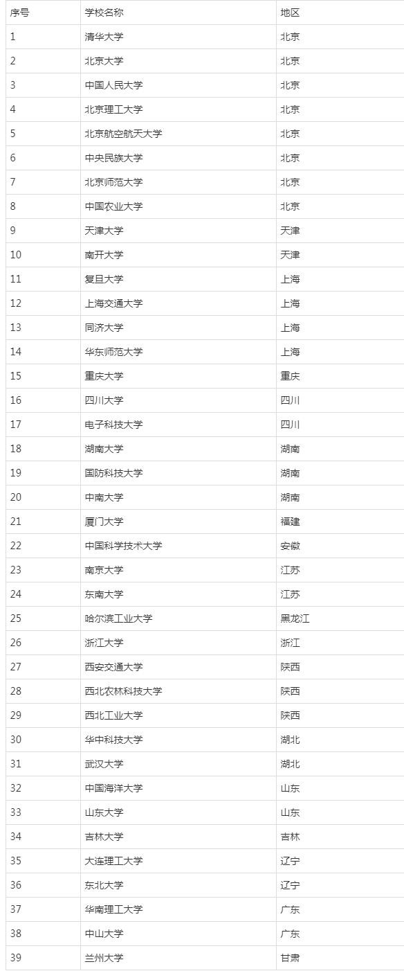 一、39所985工程大学