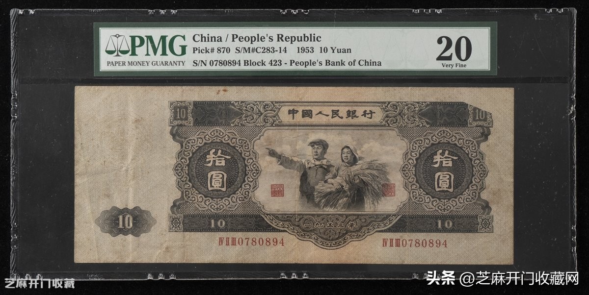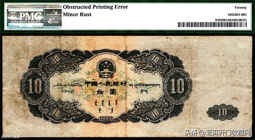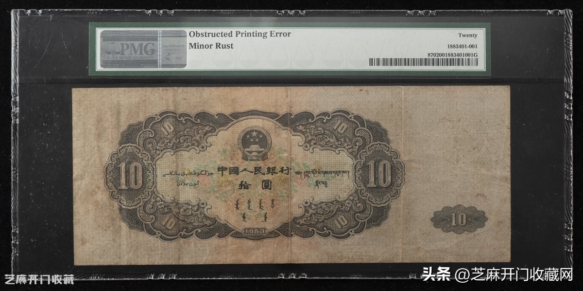 3:1953年第二版人民币拾圆一枚,漏印,罕见,PMG 20,估价: RMB 200000,成交价格: RMB 517500