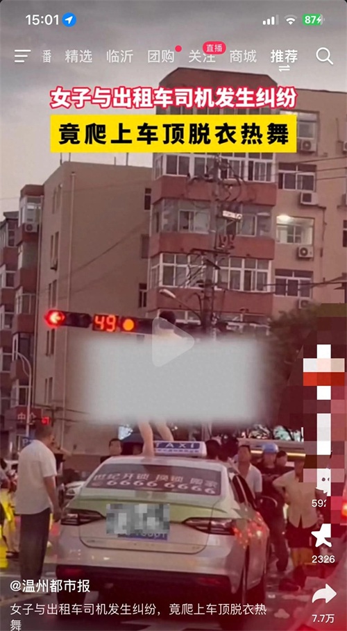 在李村的主干道上,车水马龙,人声鼎沸。阳光透过高楼间的缝隙,洒在繁忙的街道上。突然,一声尖锐的争吵打破了这份喧嚣,吸引了无数的目光。一名身穿红色外衣的女子,头发散乱,情绪激动地坐在一辆出租车的车顶上,与司机发生了激烈的争执。她的声音越来越高,手势也越来越激烈,仿佛要将所有的愤怒都发泄出来。司机则站在车旁,一脸无奈,试图通过电话寻求帮助。周围的车辆不得不减速,路面的拥堵逐渐加剧,行人和司机纷纷驻足围观,这场纠纷成了街头的一景。