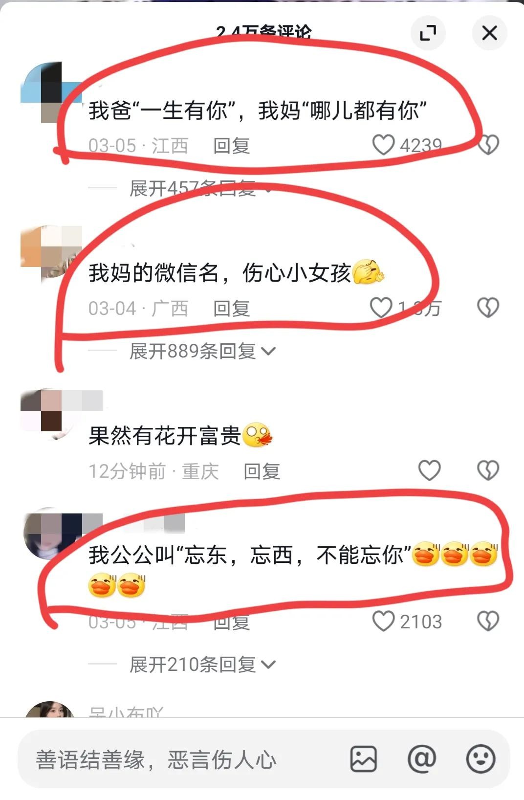 有的网友晒出爸妈的微信名:爸爸:一生有你,妈妈:哪都有你,好吧,不得不说,真得是:不是一家人,不进一家门