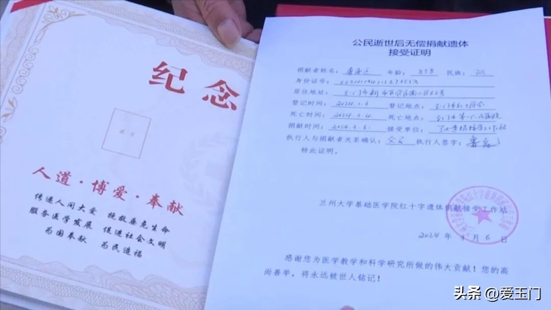 也成为玉门市首例遗体器官捐献者。