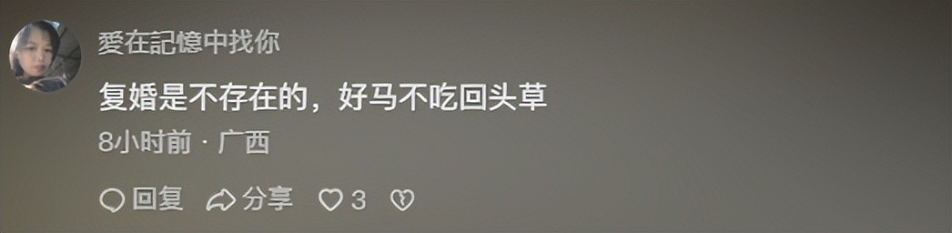 网友:复婚是不存在的,好马不吃回头草