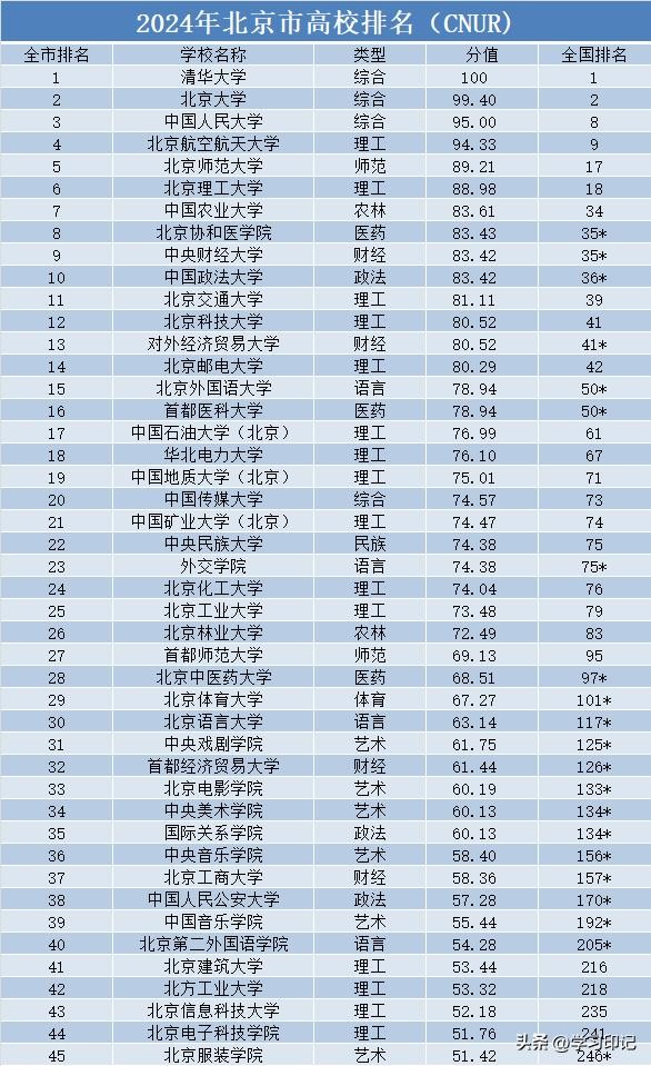 2024北京高校排名大调整,中农第7,央财第9,北邮位列14