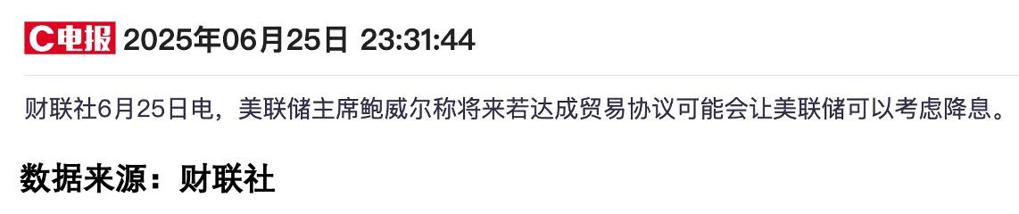 鲍威尔最近的表态给了市场一些想象空间。但关税协议这个"不可能完成的任务",让美股先跪了,我们也被迫跟着调整。这再次证明:全球市场早已血脉相连。