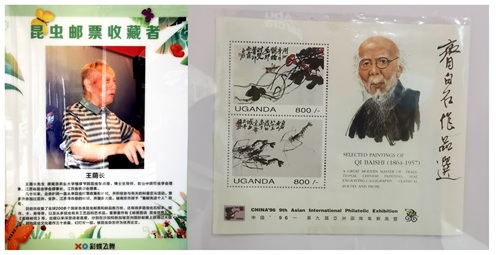 王荫长教授(左)与他的邮票藏品