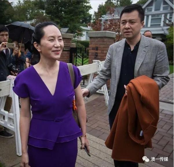后来,孟晚舟被保释,有人拍下了,他们夫妻两人一同散步的照片。