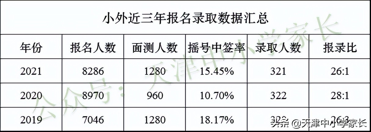 当然除了优势,以及语言类突出这个可能劣势外,最大的劣势就是竞争太激烈,有能力是基础,关键还得有运气,2021年全市报名8286人,入围面试1280人,录取321人。下面是近三年小外报名、面测、录取相关数据,供参考。
