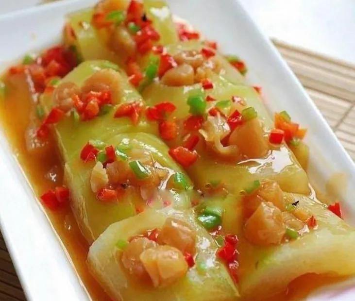 2.冬瓜改刀切四方块,中间用勺子挖个凹