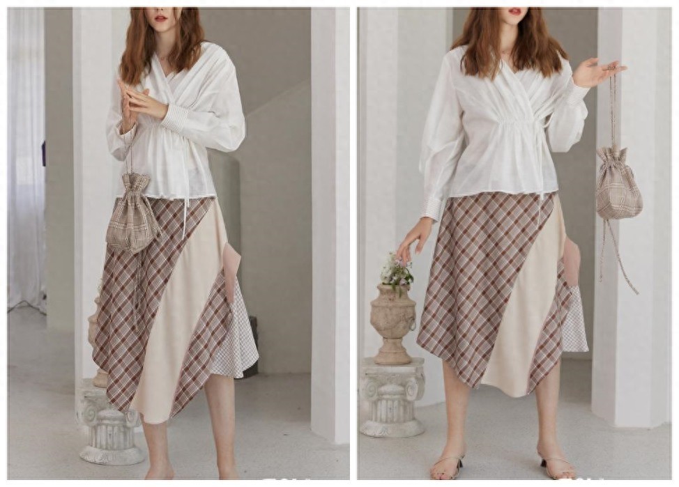 相信这个秋季你不会拒绝一件好看的半身裙,这款采用格纹元素拼接的半身裙,辨识度非常高,瞬间展现一种知性又自然的美,搭配一件褶皱抽绳的上衣,协调性相当具有和谐感,特别适合30+的女性,减龄的同时还不会失去本身该有的气质感!