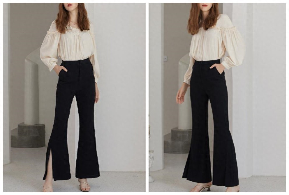 说起喇叭裤,可以说在70年代末就开始盛行啦,延续复古风,这款开叉的喇叭裤显得更具有穿搭价值,搭配一件素色的小衬衫,显得简洁又干练,特别是腰间这个位置,凸显最细之处,整体保持一丝不苟的整齐感,通勤、日常都必吃的穿搭示范!
