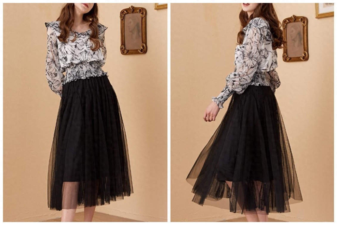 衬衫+纱裙
