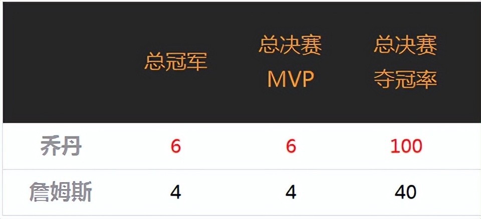 总决赛的MVP,一般选自于夺冠球队的主力球员。所以二人获得总决赛的赛季都获得FMVP,但乔丹次数占优。詹姆斯已到职业生涯末期,虽廉颇为老,尚能一战,但这一硬核数据可能没有机会赶超了。