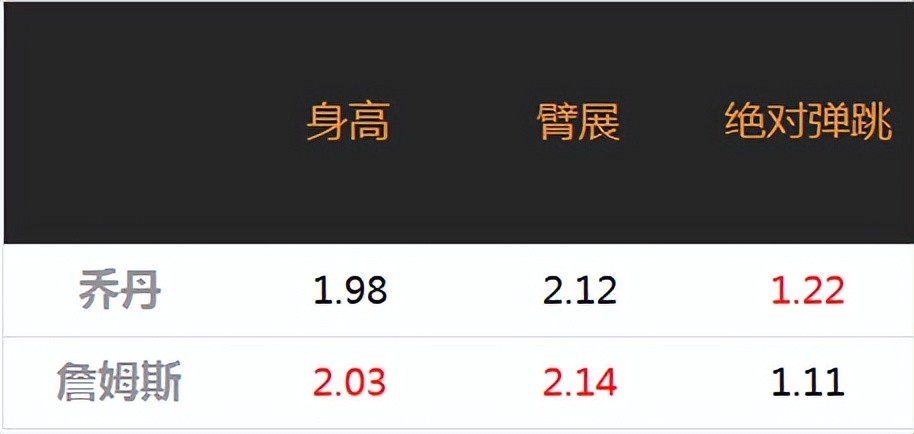詹姆斯的体重为113KG,在锋线与后卫线中,绝对是“推土机”的存在。巅峰时期的120KG,更与乔丹时代的一般中锋的体重差不多。但詹姆斯的“螃蟹步”,“六步郎”的称号,也证明在身体协调性方面,乔丹要优秀很多。比对乔丹的98KG的体重,身高与臂展上的差距,不知道巅峰詹姆斯能不能在内线持球背身单吃乔丹?
