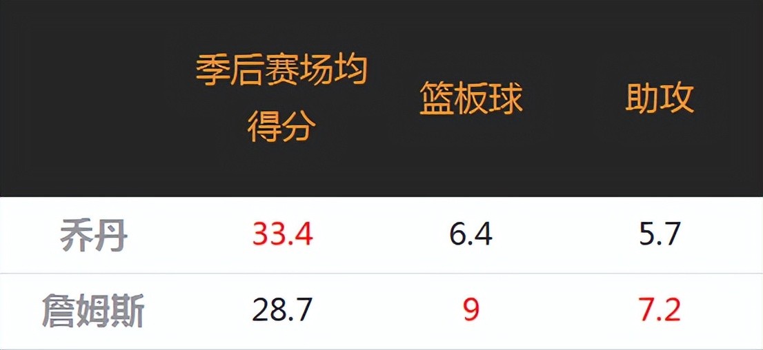 商业联赛,常规赛强度与季后赛完全不是一个量级,所以我们来对比两位大神的季后赛数据。单看数据乔老爷子得分能力更胜一筹,毕竟当年为了限制乔老爷子无解的单打能力,联盟还制定了限制乔丹的反孤立法则。