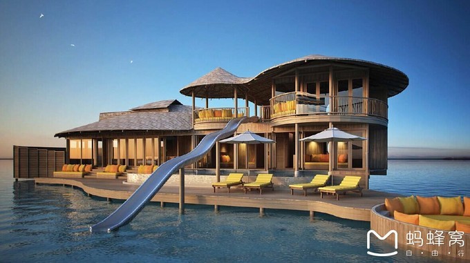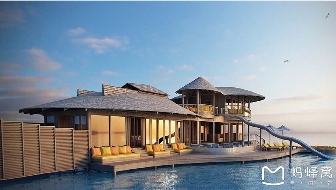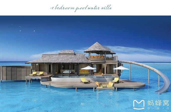 跨越两个楼层蔓延,单卧室泳池水上别墅配有充裕的露台和享受日光浴,海洋景观包围自己的私人游泳池。除了宽敞的主卧室和儿童的睡眠区,步入式迷你酒吧,浴室,更衣室,户外淋浴,客厅区与下沉式座椅非常适合闲逛。上楼更多的休息和屋顶甲板用餐凉亭和一个弯曲的水滑梯。