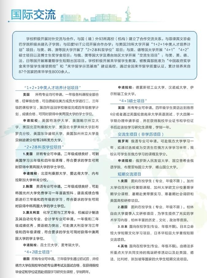 2023年学校招生计划中未有中外合作办学专业,不过学校有不少国际交流项目。